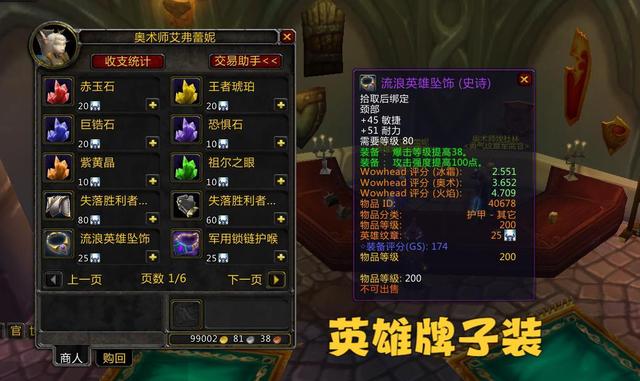英雄牌子能用来兑换200等级的紫色装备呢,这种装备就和英雄本的尾王还有10人NAXX的普通BOSS掉落的装备差不多。英雄牌子主要能兑换的部件有项链、饰品和副手武器这些。