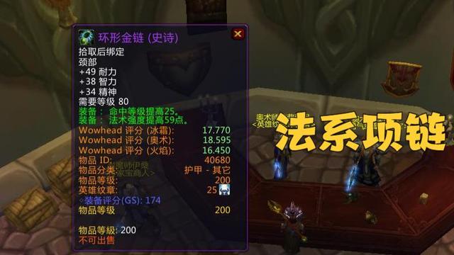 法系职业有一款环形金链。它的主属性包含49点耐力、38点智力和34点精神,绿字属性是25点命中与59点法强。这是带有精神属性的项链。WLK里的法系职业基本都能从精神属性得到一定加成。在版本初期,装备少,这种项链也能算个选择。毕竟有总比没有好,就像在资源匮乏的时候,即使不是最完美的东西也能派上用场。而治疗职业呢,他们可以挑那种能增加回蓝的项链。