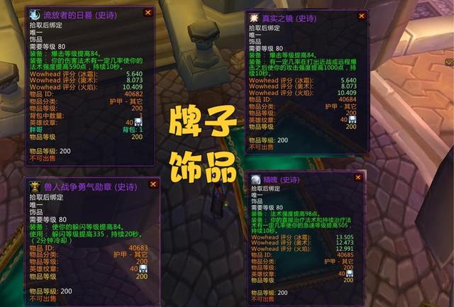 饰品的牌子货共有四种。其中一种是物理DPS用的,一种适合坦克,还有两种是法系适用的。法系饰品和物理DPS饰品都相当不错,其属性和80级美酒节掉落的饰品属性一样呢。美酒节大概在9月20日就开放了。要是暴雪在这之前就开放WLK版本的话,那P1阶段的玩家在饰品这块就没啥可担忧的啦。