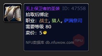 无上保卫者的圣装,是从25人英雄难度的十字军试练里,阿努巴拉克所贡献的物品中掉落的。