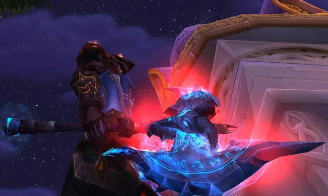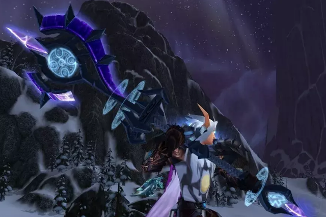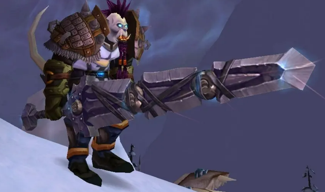 这武器的外形,那可相当惊艳,在WLK版本里绝对是数一数二的。它看起来气势非凡,就像高高耸立着的天界之门那般威严。要是玩家给它附上魔,然后双手拿着,那简直美妙极了。