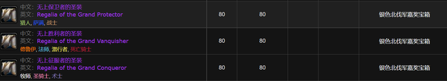 245级别的T9套装得用232套装加上一个北伐奖章来兑换。要是玩家打10人英雄难度的TOC,一次都不团灭的话,开箱子就能拿到5个北伐奖章;要是团灭次数在5次以内,那就可以拿到3个北伐奖章。另外,不管是25人普通TOC,还是20人英雄TOC,每打败一个BOSS就能得到一个北伐奖章。