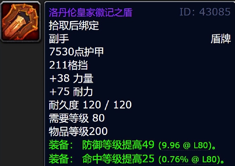 英雄难度的净化斯坦索姆里,玛尔加尼斯会掉落物品。小编在80级的5人英雄副本掉落物品里,实在找不出一把具有代表性的经典武器,那干脆就用盾牌来代替吧。洛丹伦皇家徽记之盾呢,是多数盾坦在80级时获得的第一块紫色盾牌。WLK这个资料片啊,装备美工好像不怎么在线,可即便如此,洛丹伦皇家徽记之盾那漂亮的外观,还是让很多防战、防骑玩家都特别喜欢。比如说,有个玩防战的玩家,他在80级的时候,一拿到这块盾牌,就觉得这是他所有装备里最亮眼的,哪怕当时其他装备属性可能也不错,但就冲着这个盾牌的外观,他就特别宝贝它,每次下副本都觉得自己特威风。