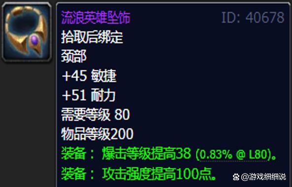 邪DK可以直接用在5H(五人英雄副本)或者10人模式团队副本里产出的牌子去兑换流浪英雄坠饰当作项链,这就挺不错的。为啥呢?因为这个坠饰的属性很契合邪DK。哪怕它没有命中属性也没关系呀,毕竟还有别的装备能弥补嘛。