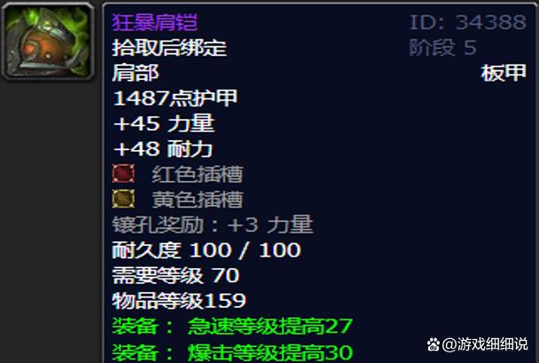 要是没有狂暴肩铠的话,开荒的时候就只能穿5H副本出的蓝色肩膀了,属性上会差很多。不过就算真没有也不用着急,毕竟很快就能穿上T7肩膀了。我想说的是,有SW肩膀的人开荒时会更轻松自在些。