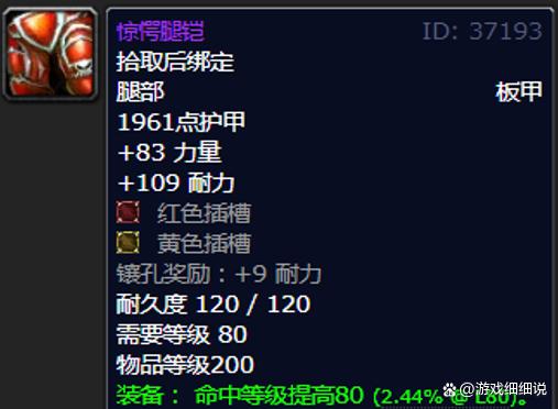 选宝石是有原则的。得先瞧瞧命中达没达标,多彩宝石的效果能不能触发。要是都满足,就尽量镶嵌力量宝石。WLK版本里,制皮专业制作了一种新的腿甲片,它能提供75点攻击强度和22点暴击等级,所有主打PVE的物理输出职业都得用这个腿甲片。