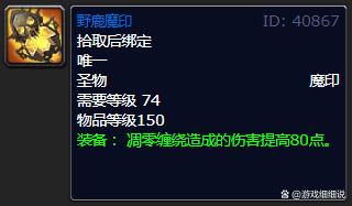 以前玩WLK版本的时候,我玩的是邪DK。那时候,野鹿魔印我一用就是好长时间呢。就因为有这样的亲身经历,我就按照当年的情况,把这个野鹿魔印推荐给大家。
