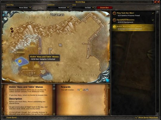 WLK最后一个版本加入了任务追踪功能,这功能能告知任务地点,还能直接在地图上显示。我们更期望玩家自己去探索,和他人组队完成感兴趣的活动。所以我们不打算实装这个功能,毕竟它改变了玩家的游戏方式。不少人不希望这样,他们想读任务文本,探索世界,自己去发现任务地点之类的东西。