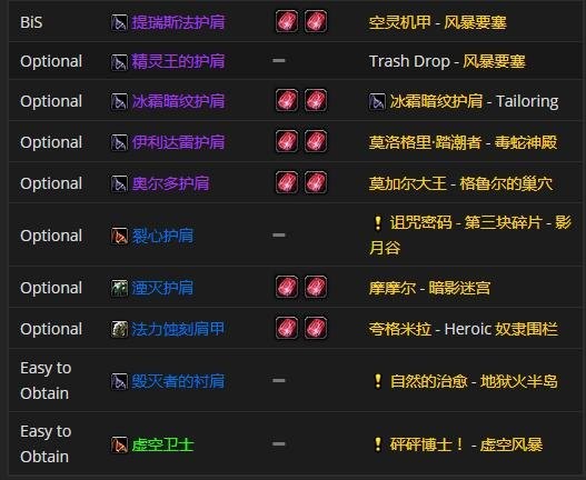 肩部装备首选提瑞斯法护肩,附魔推荐强力宝珠铭文。