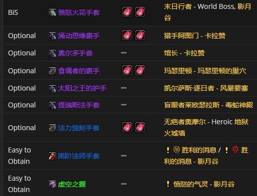 手部装备的话,愤怒火花手套是首选。至于附魔嘛,比较推荐附魔手套 - 特效法术能量。