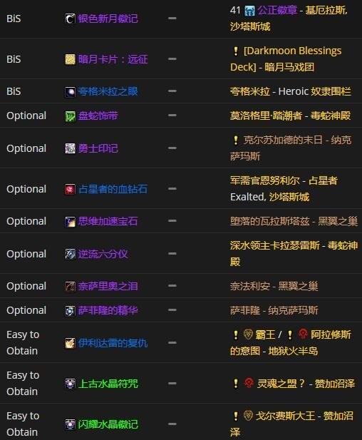 饰品首选暗月卡片:远征、银色新月徽记