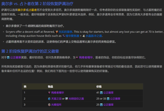 在第2阶段呢,大部分套装依旧是最优选择。不过,也有少数套装是有替代品的。要是条件允许的话,您得用T5的头和肩膀部件,再配上能找到的最好的替代装备。其实,使用下面罗列的其他选项也挺不错的。为啥这么说呢?因为有不少部位的装备,它们的统计数据都非常接近,而且啊,我们的第5层套装奖励也不是特别厉害。