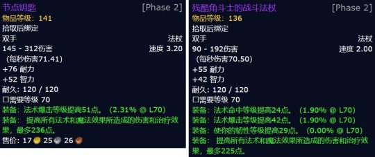 咱们能很明显地瞧出来,钥匙上多了9级法爆和9点法伤,S2法杖呢,则多出24级命中等级。要是职业缺命中的话,S2法杖可比钥匙厉害呢!哪怕命中已经超了,S2法杖和钥匙相比,也就是差那么一丁点儿,并且S2法杖的外观还漂亮得多呢。