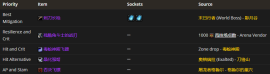 多件PVP装备有两个作用。其一,它能提升仇恨制造能力。其二,由于防御技能不足会带来被暴击的威胁,而这些装备的韧性则可以对此进行弥补。