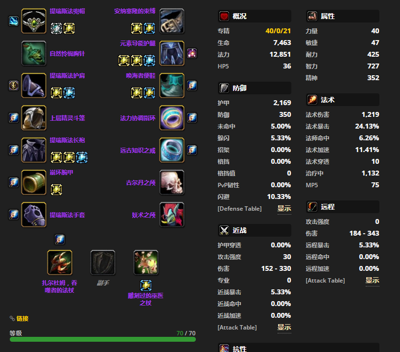 胸部装备的话,首先可以选择提瑞斯法长袍。至于附魔嘛,推荐附魔胸甲 - 杰出属性。