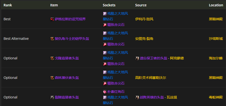 头部装备首选萨格拉斯的诅咒视界,附魔推荐凶暴雕文