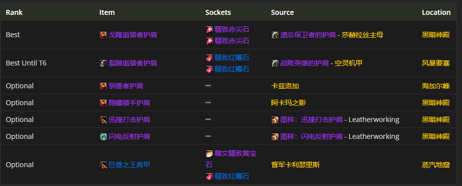 肩部装备首选戈隆追猎者护肩,附魔推荐天灾的威严