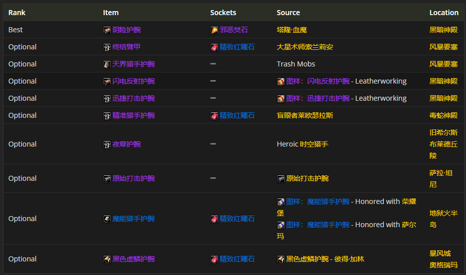 手腕装备的话,阴险护腕是首选。至于附魔嘛,“附魔护腕 - 突袭”是比较推荐的。
