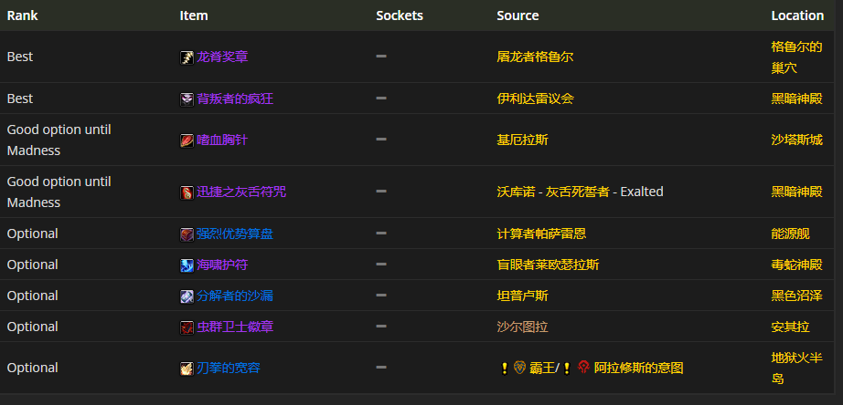饰品首选龙脊奖章、背叛者的疯狂