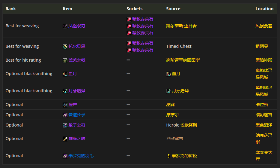 要是选择双手武器的话,凤凰双刃是个不错的选择。说到附魔的话,推荐用附魔武器 - 强效敏捷来给武器附魔。