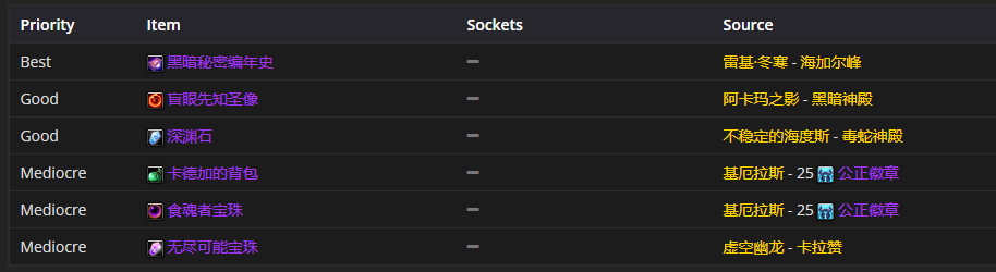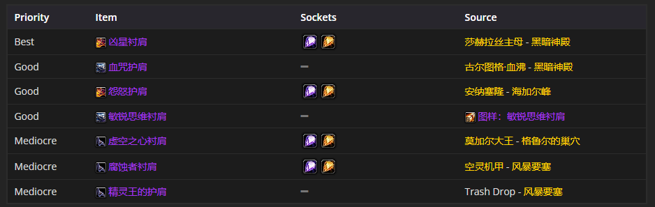 肩部装备首选凶星衬肩,附魔推荐天灾的力量
