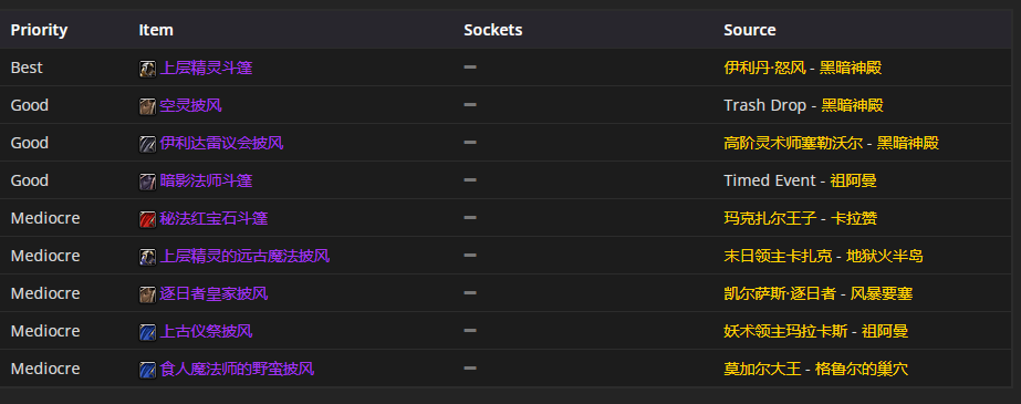 要是选披风装备的话,上层精灵斗篷是首选哦。至于附魔嘛,“附魔披风 - 狡诈”这种是比较推荐的。