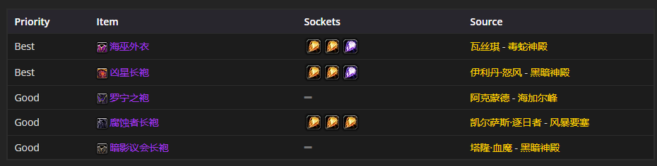 要是挑选胸部装备的话,海巫外衣是首选。对于附魔呢,比较推荐的是附魔胸甲 - 杰出属性。
