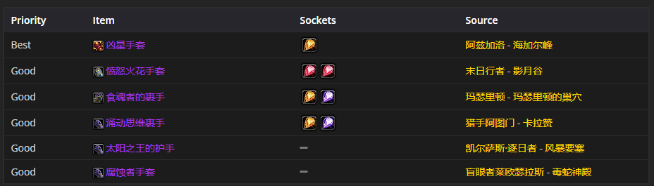 要是挑选手部装备的话,凶星手套是首选。至于附魔嘛,附魔手套 - 法术能量是比较推荐的。