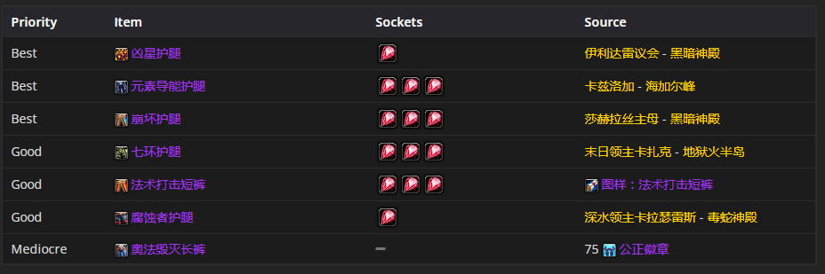 要是选腿部装备的话,凶星护腿和元素导能护腿是首要的选择。至于附魔嘛,符文魔线是比较推荐的。