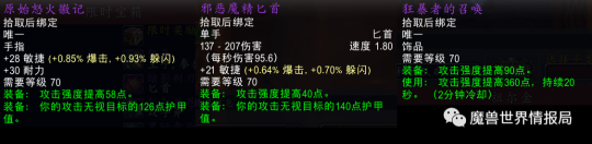生存猎人想让团队伤害达到最大,那就得堆敏捷属性。在祖阿曼版本的时候,配装方面也就是换了个[原始怒火徽记]罢了。