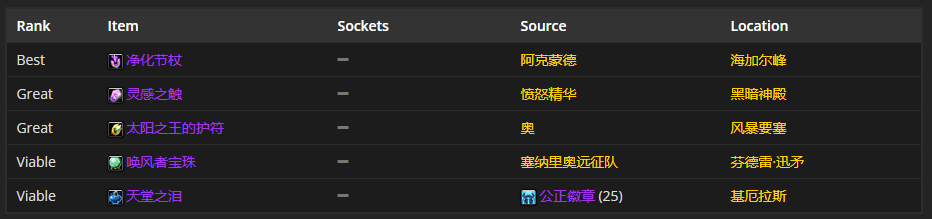要是选手腕装备的话,那迅捷治疗护腕是首选。而说到附魔的话,附魔护腕 - 超强治疗是比较推荐的。