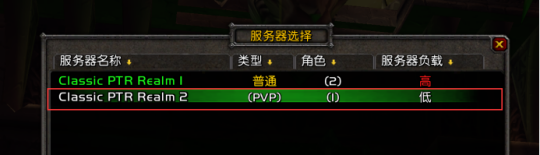 在进入测试服之后,要选择“Classic PTR Realm 2”这个服务器。