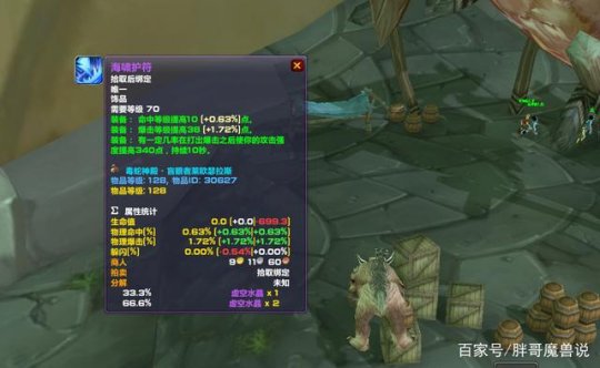 海啸护符有常驻属性,是10点命中以及38点暴击等级,它的触发特效为340点攻强,而且这个特效会持续10秒。近战职业的攻击频率照理说要比远程职业高得多,这样的话,海啸护符特效的覆盖几率本该比逆流六分仪高的。可从WCL(一个能反映战斗数据的平台,上面有大量玩家的战斗数据记录)的情况来看,事实却不是这样。