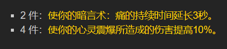 术士的4件套特效是必定会出现的。要是使用牺牲暗毁天赋的话,单体伤害大概能够提升5%呢。