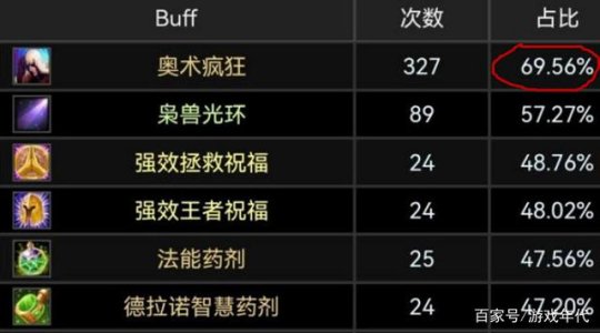 咱们来瞧瞧4T5法师的全程特效覆盖状况。有个能加70法伤的BUFF,名字是“奥术疯狂”。只要打出暴击,这个BUFF立马就触发,它没有内置的冷却时间,在BUFF持续期间要是又暴击了还能再次触发并且刷新时长呢。这就意味着,只要在6秒之内有技能暴击,那70法伤的BUFF就会一直存在。拿奥冲的施法时长来说,再看看现在的配装暴击率,还有电萨图腾肯定会给的3%暴击,以及可能存在的鹌鹑提供的5.9%暴击(因为有乌鸦神像),很容易就能让常驻暴击率超过30%。