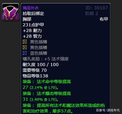 图里的这个奥法,是算上了全程所有情况的,像坐在地板上啊、跑位的时候啊,还有拍装备之类的时间,全都算进去了。就这种情况,覆盖率都快接近70%了呢。而鹌鹑光环的覆盖率还不到60%,从这儿就能想象到实际战斗中的状况大概是什么样了。 这时候就有个问题冒出来了。4T5的效果呢,基本上就等同于在BOSS战里增加70点法伤。这个效果跟魔焰套比起来,已经是超过它了。但是和海巫比呢?就只看胸甲这一块吧,海巫的命中和暴击可就要高不少呢。这时候就得做个取舍了,一边是27点命中和12点暴击,另一边是35点法伤,就看大家自己怎么选了。 再想想海巫那动不动就两三万金币的价格,术士、法师、猎人的T5胸甲,恐怕也就只有法师会去抬高价格抢购了。这么一琢磨,答案就很明显了。