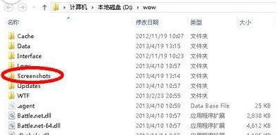 已经找到了电脑里“魔兽世界”的安装位置目录,而且在这个目录里还能看到保存游戏截图的Screenshots文件夹呢,就像下面这张图显示的一样。
