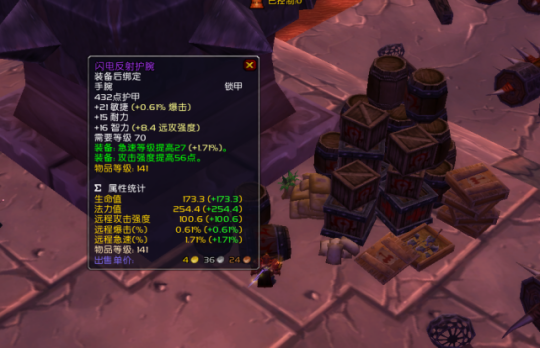 闪电反射护腕的主属性包含21点敏捷、15点耐力还有16点智力,其绿字属性是56点攻强与27点急速。单从属性数值来讲,这件护腕确实比不上黑暗神殿血魔掉落的阴险护腕。不过呢,对于猎人而言,在P3阶段,这件护腕带来的收益是最高的。这是因为猎人在P3阶段有其独特的战斗场景和需求模式,而闪电反射护腕在这些特定情况下能发挥出比阴险护腕更符合猎人战斗需求的作用,尽管它的属性数值乍一看没那么亮眼。