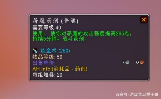 屠魔药剂有个效果,能让对恶魔的攻击强度提升265点,这个效果能持续5分钟呢。祥子哥以前也提过屠魔药剂,在他看来,这药剂对物理系而言,那可算得上是超级棒的药剂了。不过呢,到了P3阶段,就只有猎人会大量使用这屠魔药剂了。近战职业啊,咱们都知道近战在游戏里的地位,就他们那情况,能不能用上屠魔药剂,大家心里其实都有数,祥子哥就不再多说啥了。
