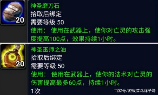 祥子哥最后得说说那些近乎绝版的东西,也就是NAXX时期的神圣磨刀石和神圣巫师之油。神圣磨刀石能把对亡灵的攻击强度提升100点,而神圣巫师之油呢,可以让法术伤害提高60点,这对玩家去开荒P3阶段有很大的助力。不过啊,这两样东西已经绝版了。可能有些玩家手里还存有这两样东西,但每用一个就少一个喽。就好比你有一袋子珍贵的种子(这就像那两种绝版物品),每次种地(类似玩家使用物品)用一颗,那袋子里的种子就会少一颗,数量是用一次就少一次的。