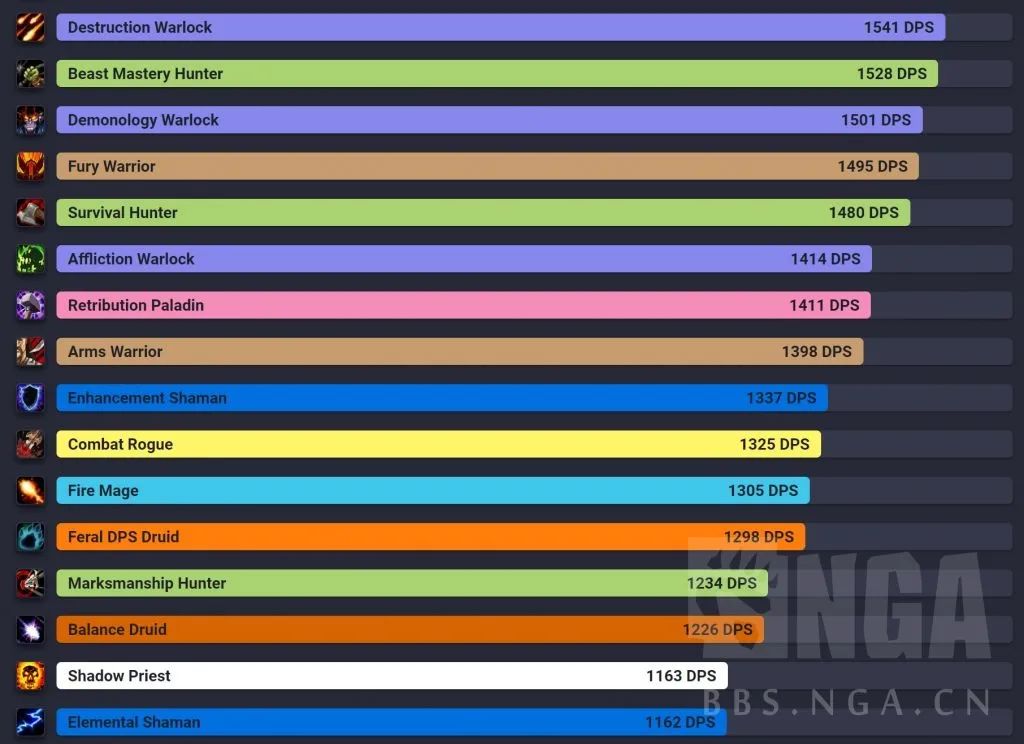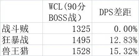 根据WCL的实战数据,制作出了一个关于盗贼、狂暴战和猎人的DPS对比表格,如下所示。