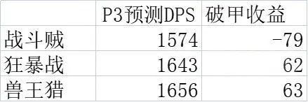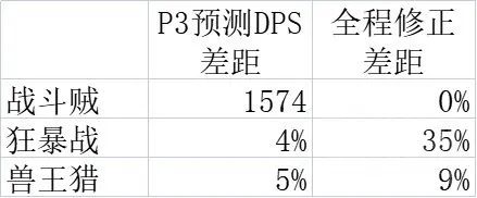 P3装备得到提升之后,战斗贼和狂暴战、兽王猎之间的DPS差距就变小了。
