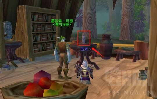二楼的NPC面前桌子上就是我们要找的木雕啦!