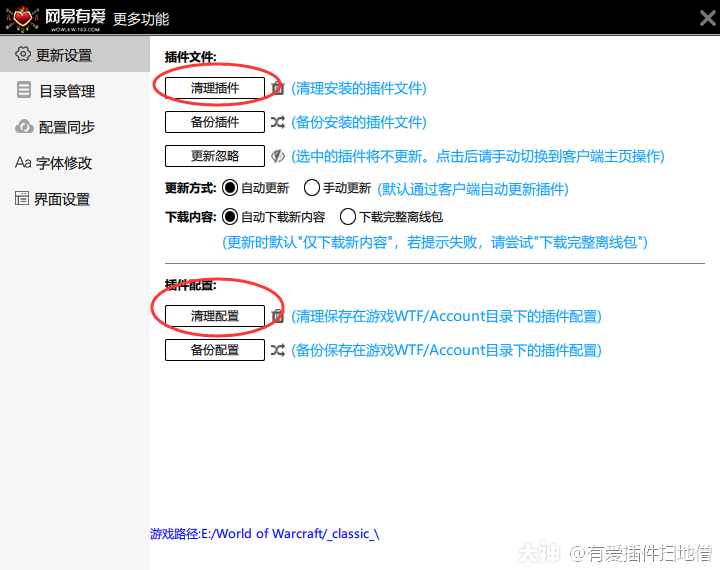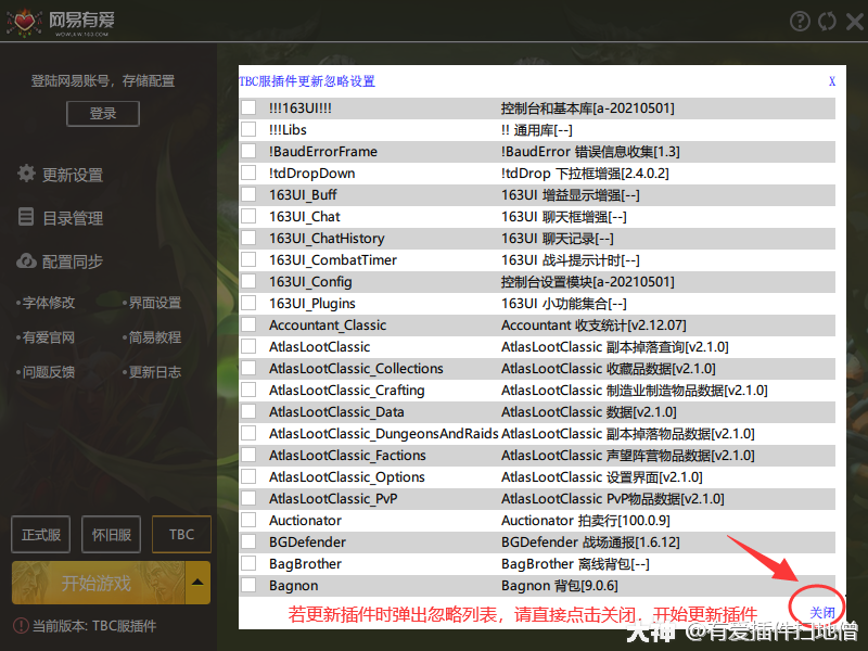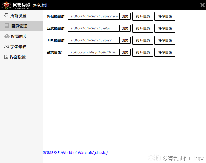 接着,在插件客户端的目录管理那儿,再次选择怀旧服或者TBC插件的目录就好了。