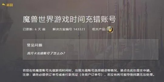 聪明的玩家瞅一眼上面这图就明白了。在TBC怀旧服里,充了月卡之后呢,是能够更改被充值的战网账号的。玩家按前面说的方法把名字改好,再用子账号登录游戏。接着,在游戏里点击那个红色问号形状的请求帮助按钮,选付费问题,在搜索栏输入“充错账号”,点击进入后就会得到一个链接,最后按照指引把子账号的月卡转移到主账号就行了。打个比方,就好像你在一家商场办了卡,结果发现卡办错地方了,商场会给你个办法让你把卡的权益转到正确的地方,这和游戏里转移月卡是类似的道理。