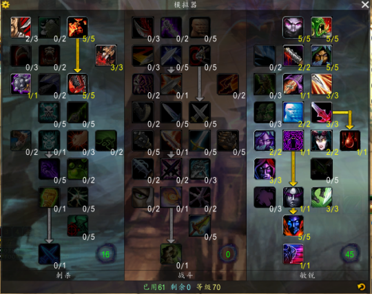 我现在用的是16 - 45的天赋。这个天赋呢,重点在于隐身的时候搞伏击爆发。接着,通过宏命令瞬间切换成慢速武器来打出出血效果。