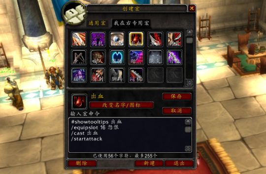 有个宏,只要点一下,就能把主手武器换成慢速匕首。通常呢,打完伏击现身之后,要马上点这个宏来切换成慢速武器。要知道,切换武器的时候会有0.5秒的公共冷却时间(GCD)。