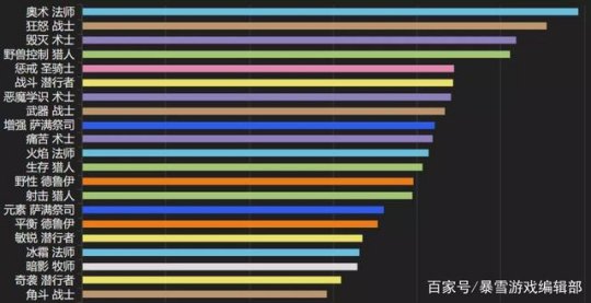 我们先看一下全部百分比的排行榜吧,这个排行榜能体现出职业整体的输出状况。术士和奥法这两个职业依旧排在前两名呢。术士的话,我们可以把它的三个天赋合起来看,为啥呢?因为这三个天赋之间的差距挺小的,而且毁灭术的数量占了一大部分。
