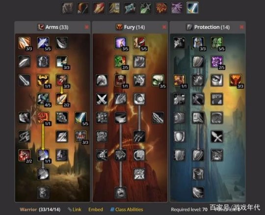 武器T在P2阶段,天赋这么点:33、14和14。武器系点到致死打击就成,血腥狂乱易伤必须点出来;防护系要点挑衅和破釜沉舟,中间那些强化怒吼天赋(属于工具人天赋)也得点。乍一看,你也许会觉得这个天赋有点怪模怪样的。它输出能力比不上狂暴战,扛怪能力又比不上盾T。在PVP里,没有强化致死和复苏之风,就连野外小怪能不能打得过都不好说呢。不过呢,有这种天赋的战士可不容小觑。要是拿着双手剑,在空灵机甲那儿,术士就算狂轰滥炸5分钟也不会OT。踏潮的时候,战士没办法当主T,这时候直接转成武器战,就能空出一个坦克位用来输出了。就好比在一场战斗中,团队的资源分配就像拼图,每个角色都有自己的位置。这个天赋的战士就像是一块多功能的拼图块,在不同的战斗场景下,发挥着独特的作用,既能在特定情况下保证输出稳定,又能灵活转换角色,为团队提供额外的输出空间。