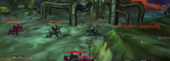 先拉到第三波龙虾人,然后磕下第一瓶迅捷药水,接着冲到前面不远处,再拉到第四波龙虾人。